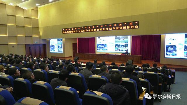 伊金霍洛旗四大班子在家縣處級領(lǐng)導(dǎo),各鎮(zhèn)、各園區(qū)、旗直各有關(guān)部門、人民團(tuán)體、直屬單位主要負(fù)責(zé)人,金融機(jī)構(gòu)負(fù)責(zé)人等約200人參加了報(bào)告會。
